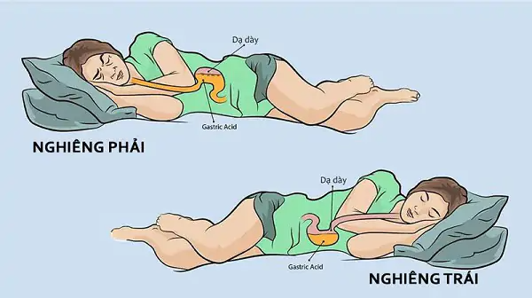 - Tư thế nằm: Nằm nghiêng bên trái giúp hạn chế trào ngược vì dạ dày nằm thấp hơn thực quản. Ngược lại, nằm nghiêng bên phải hoặc nằm ngửa dễ làm axit trào lên.